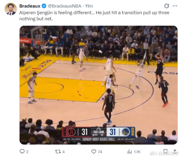 如今的勇士队内线尺寸不低,波尔津吉斯2.21米,巴锡2.08米但申京根本不惧这两位内线,首节如果没有那个走步违例申京等于统治篮下,首节8分钟里4中3拿到6分1篮板1助攻1盖帽。
