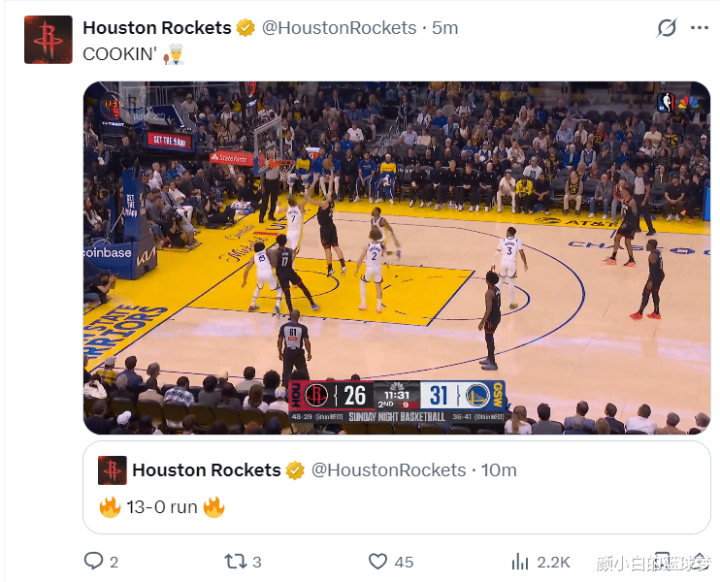 第二节开场火箭的一波13-0申京一人贡献5分3篮板1助攻,申京就连转换的三分球都能命中,他还助攻霍勒迪命中三分,申京就是这支火箭的第一核心。申京第三次选择三分没中,单打波神命中,半场打完申京10中6拿到13分4篮板2助攻1盖帽。